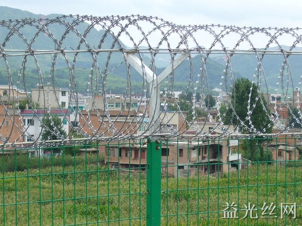 刺繩護(hù)欄網(wǎng)是在兩條刀片刺網(wǎng)之間以不銹鋼片和鍍鋅鋼片強(qiáng)力夾扣,展開(kāi)后即呈交叉狀,本產(chǎn)品具有防腐、防老化、抗曬、耐候等特點(diǎn)。
