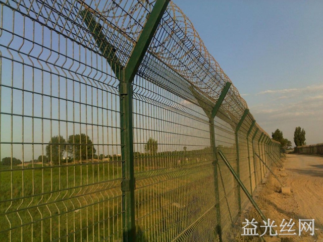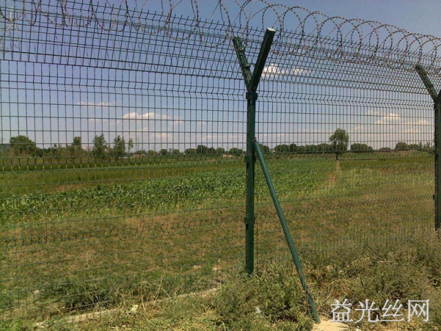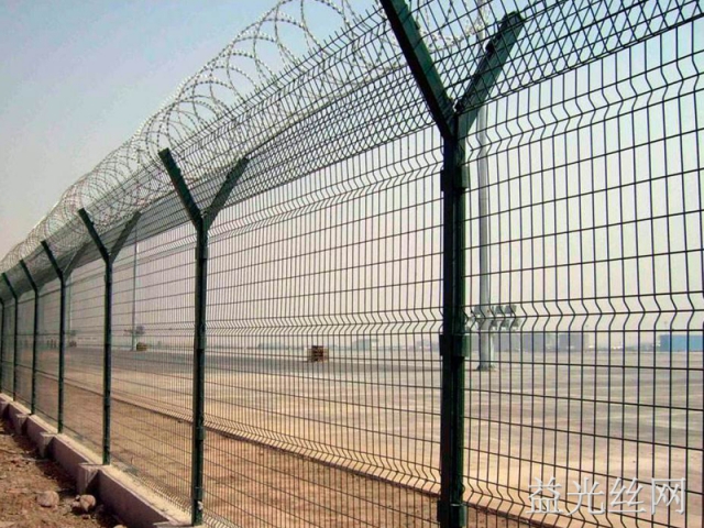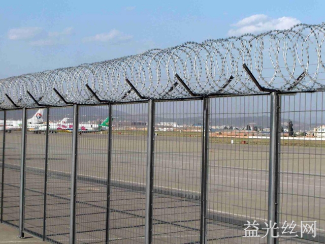 機(jī)場護(hù)欄網(wǎng)又稱作“機(jī)場護(hù)欄”、“Y型安全防御護(hù)網(wǎng)”,它是由V型支架立拄,加強(qiáng)型焊接片網(wǎng),安全防盜連接件和熱鍍鋅刀片刺籠組成是強(qiáng)度和安全防御性級(jí)別很高的隔離柵產(chǎn)品。近年來,被廣泛應(yīng)用在機(jī)場,軍事基地等高安全場所。注:如果在機(jī)場護(hù)欄網(wǎng)頂部加裝刀片刺絲、刀片刺繩后又很好的增強(qiáng)了安全防護(hù)性能。